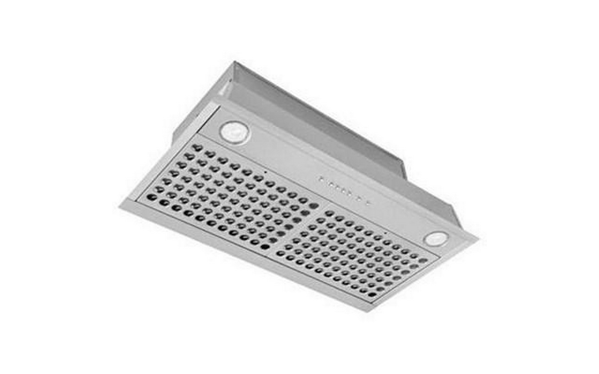 Best 28-inch stylishly stainless steel retro hood insert. It features an LED light system, a 600 CFM blower and rounded baffle filters.
