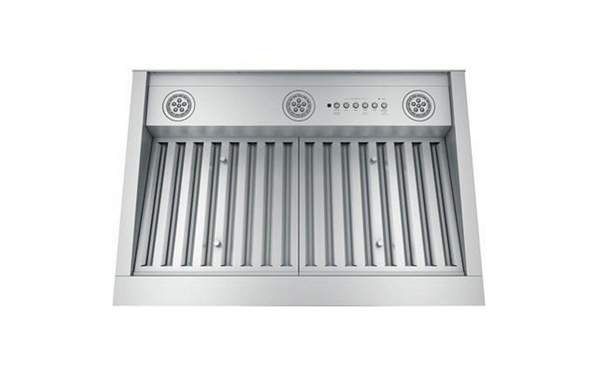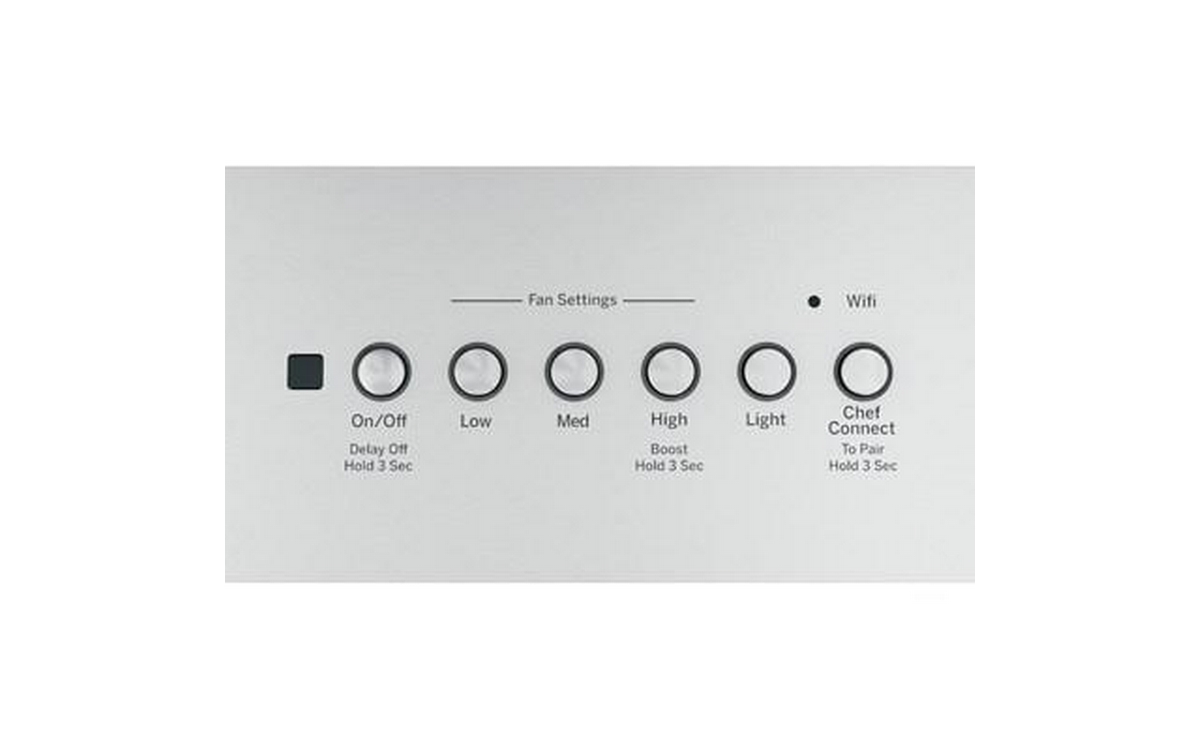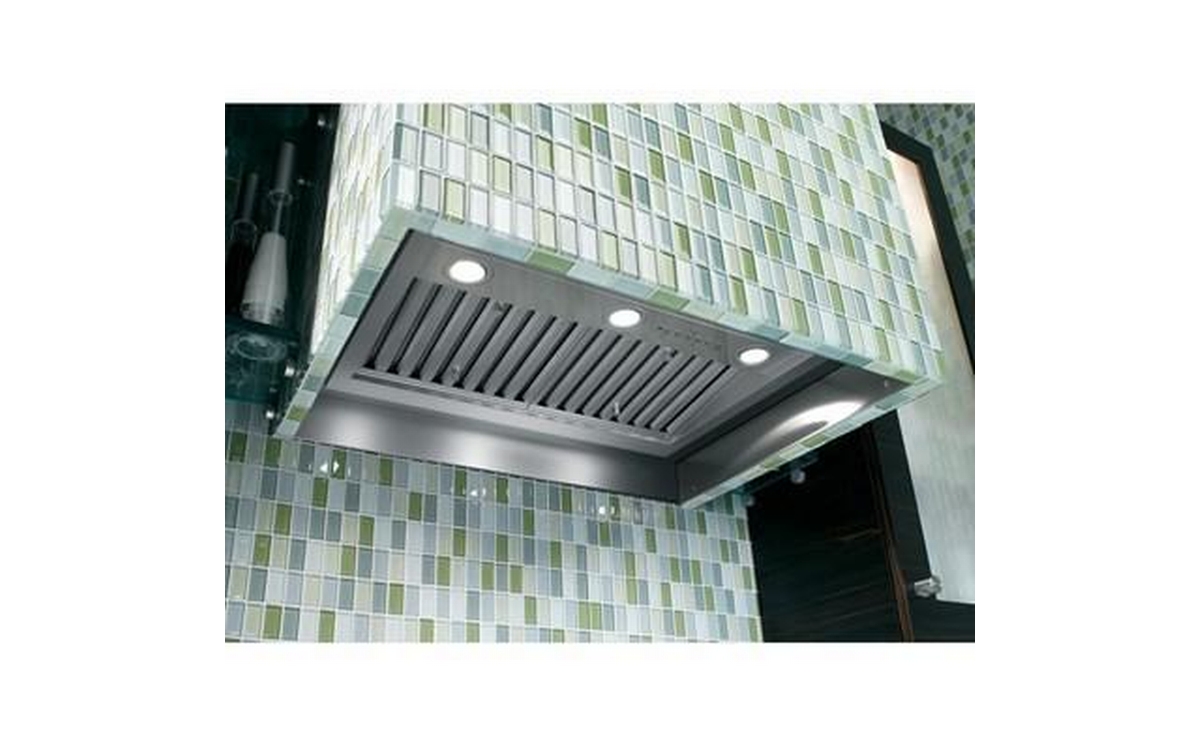This 30-inch GE custom insert features dimmable LED lighting, 4 speeds and backlit electronic control.