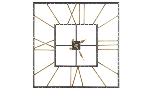 A huge clock, especially one that's unique, is an easy way to incorporate casual design into a room's decor. With this large square wall clock, you'll always know what time it is because it can't be missed. Its openwork design cleverly incorporates a Roman numeral clock face with traditional hands in a black frame design—what a clean look that can complement many different types of decor, from modern to traditional.