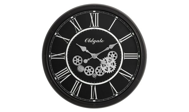 Add a touch of modern sophistication to your home decor with this stunning 30” round wall clock in an elegant black finish, with a moving gear mechanism. Its large, oversized design makes a bold statement on any wall, while the intricate gear mechanism adds a unique, on-trend touch. Made with a durable plastic frame and glass surface, this analog clock is built to last. The quartz movement guarantees precise timekeeping, while the printed Roman numerical markers make it easy to read at a glance. No assembly is required, simply insert 3 AA batteries (not included) and hang this clock on your wall for instant transformation. Its tick-free design makes it perfect for quiet spaces, and the 2-year limited warranty against defects gives you peace of mind. Intended for indoor use only, make a chic statement with this transitional-style decorative wall clock, sure to stand out in any room.