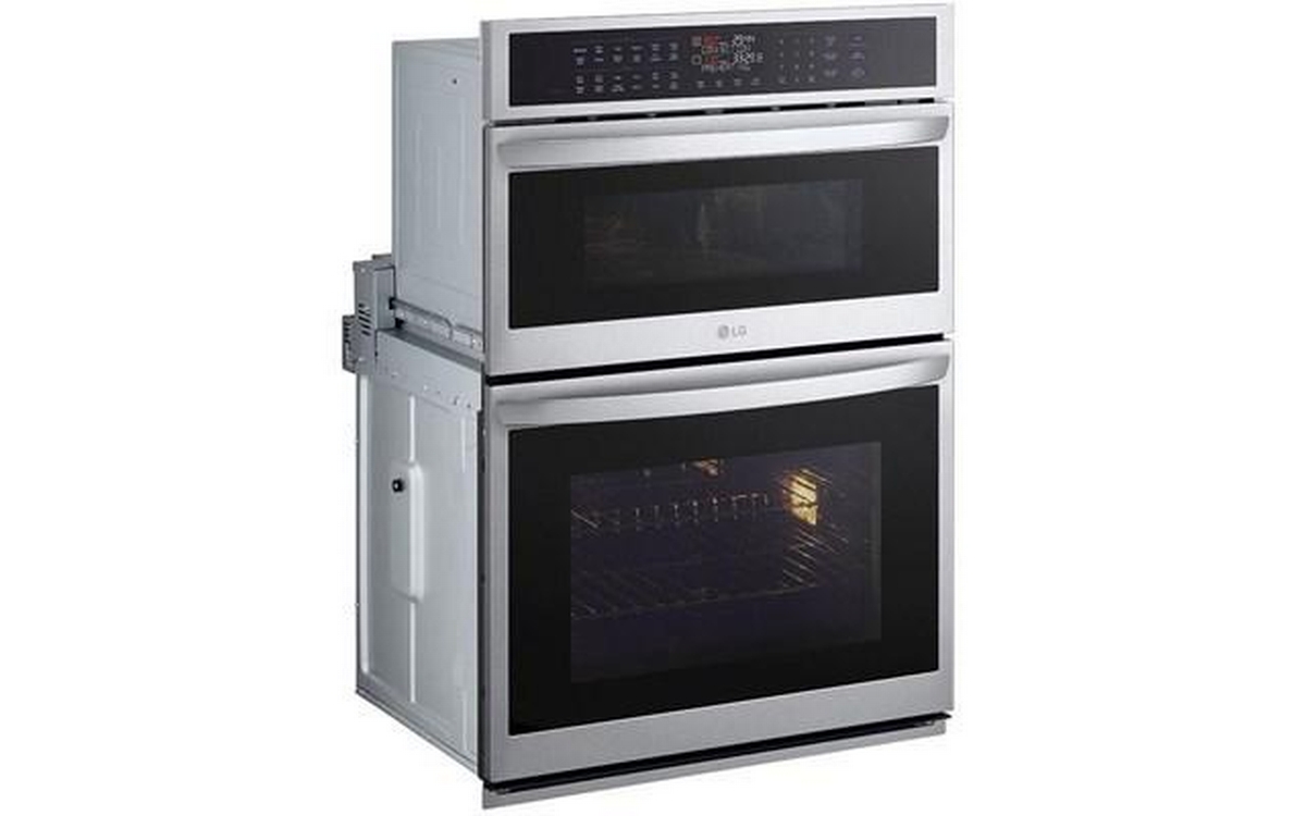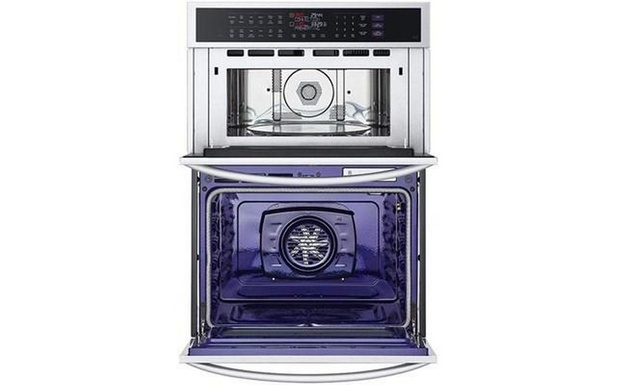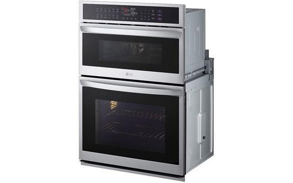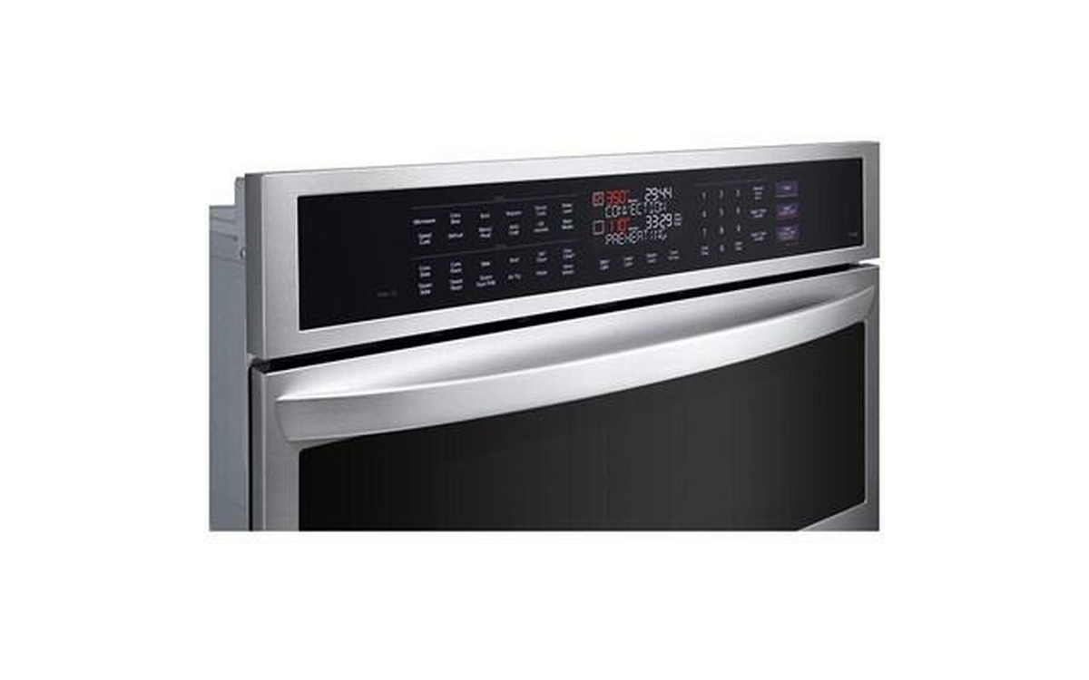 LG 30-inch combination wall oven with speed oven. This model features Infrared Heating™, EasyClean® and self-cleaning, steam cooking, and backlit SmoothTouch® glass controls.