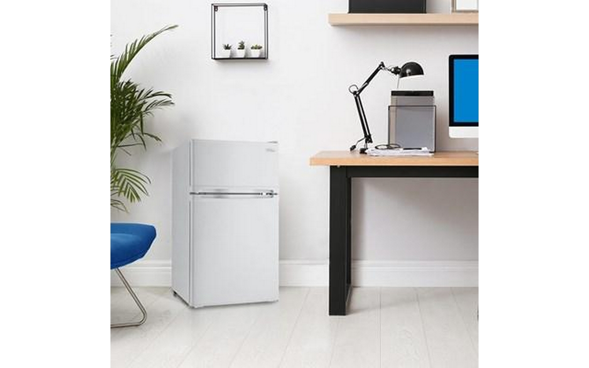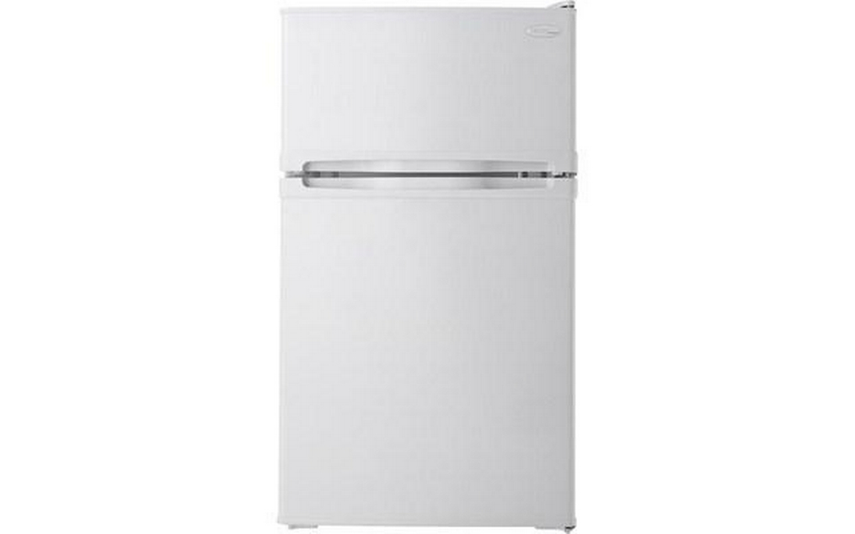 This dual door Energy Star® rated compact refrigerator includes a separate fridge and freezer section. The 3.1 cu. ft. capacity provides enough room to keep small meals, snacks, leftovers, drinks and frozen fare handy. This miniature version of larger models is ideal for dorm rooms, the recreation room or the office.