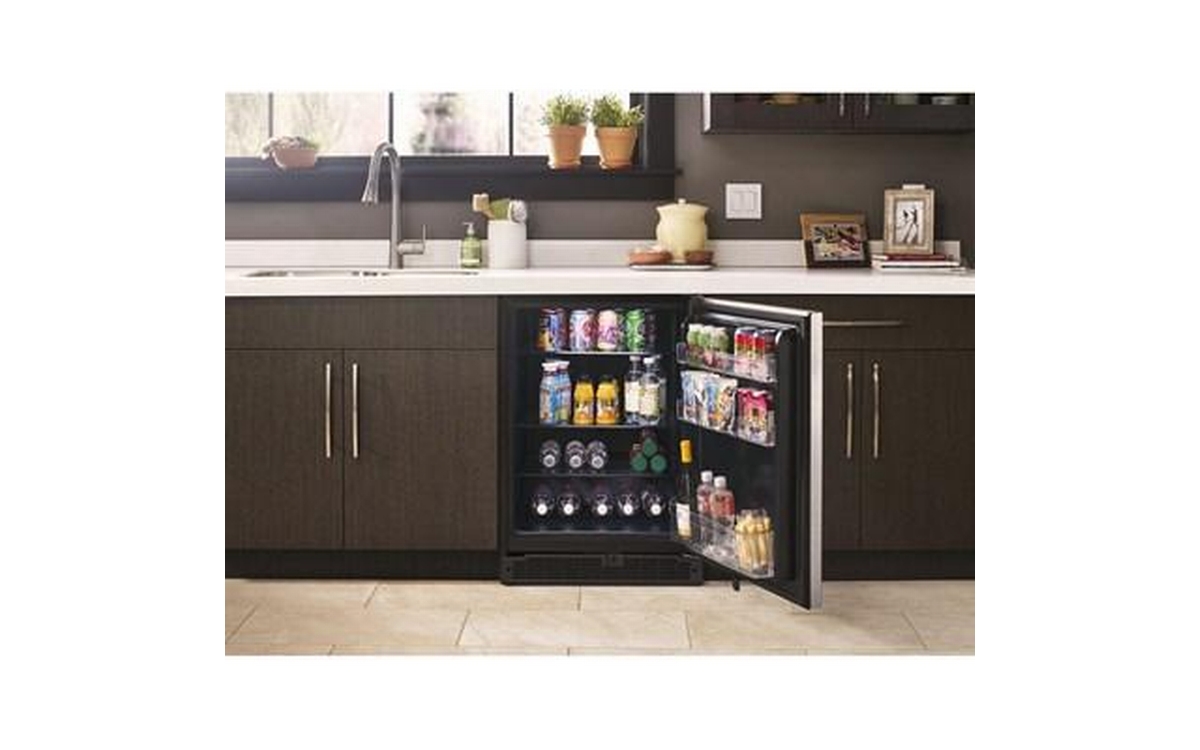 Stay organized with purposeful spaces for any item. This undercounter 5.1 cu. ft. refrigerator features fingerprint-resistant stainless steel that makes it easy to clean. LED interior lighting keeps food looking as good as it tastes, and this undercounter fridge has a temperature sensor alert to makes sure drinks stay cold.