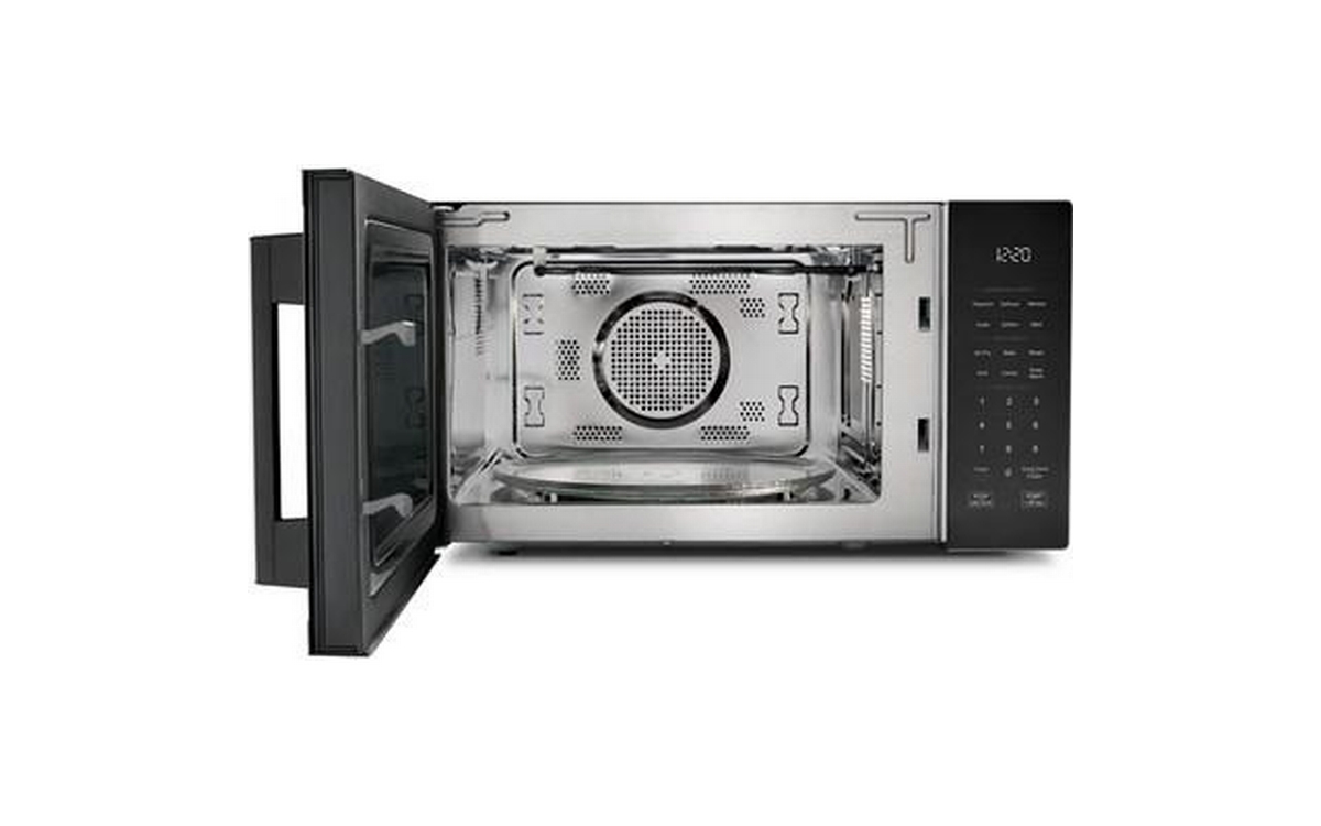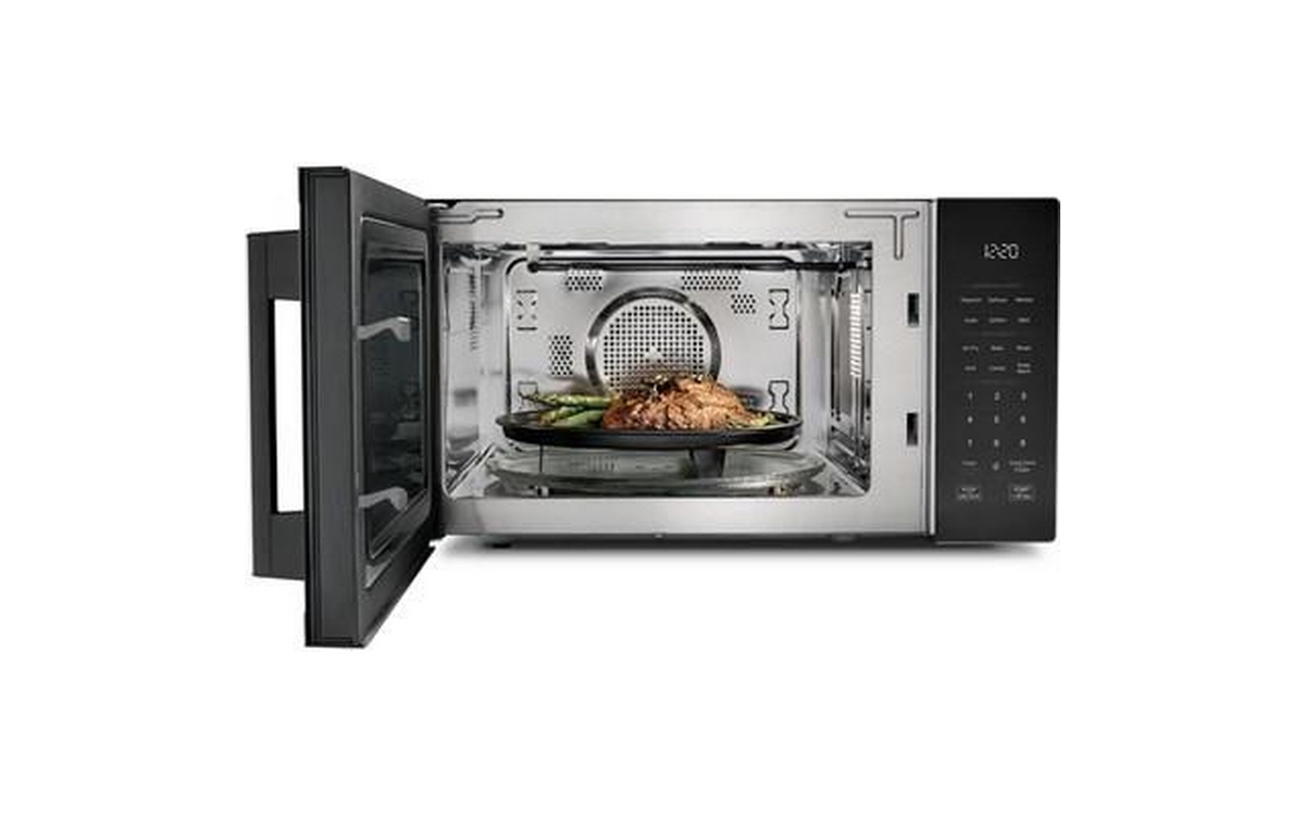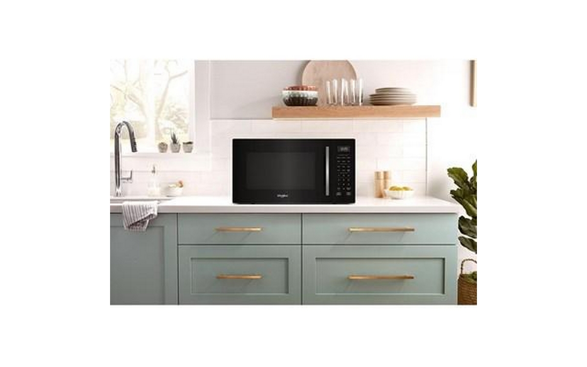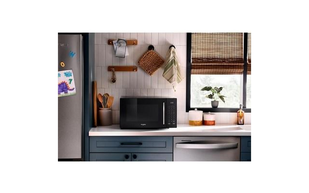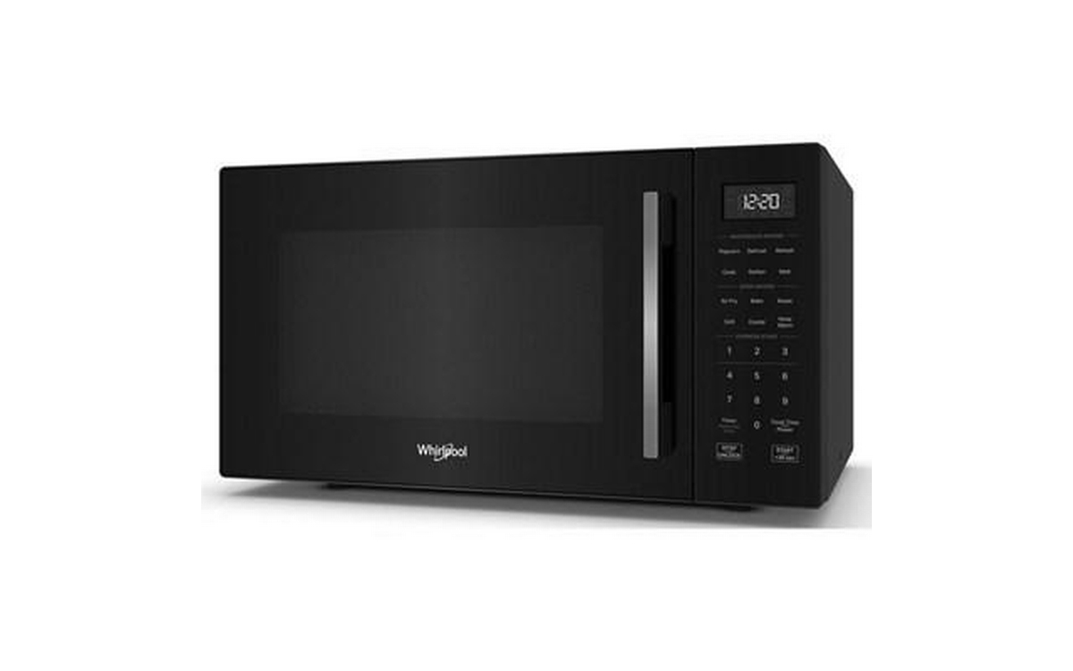 This Whirlpool 900 watt countertop microwave oven puts versatility first with All in One cooking modes including Air Fry, Grill Mode, Roast Mode and Combi. Its modern easy-to-use design and 1.0 ft. capacity fits most meals while not taking up too much countertop space, and its Dishwasher-Safe Turntable Plate makes for easy cleanup.