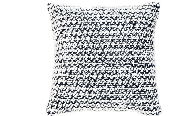 DITALINI KNITTED CUSHION Navy and white duo, a must to have. Navy & white knitted decorative cushion Size: 18' x 18' 100% acrylic cover Polyester filler Zipper closure Machine washable