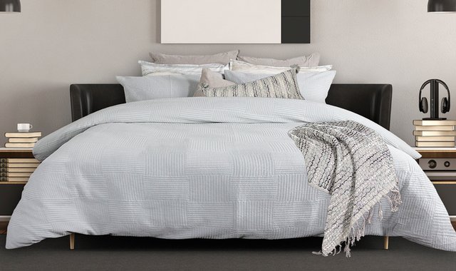 60in duvet cover and 2 pillowcases 100% cotton, 220 thread count, glamorous texture in pale gray color.