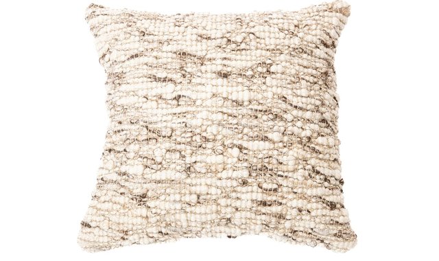 Knit decorative pillow with in shades of natural and sand Size: 20'' x 20'' Cover 75% wool - 20% polyester - 5% cotton Polyester filler Ziper closure Spot clean