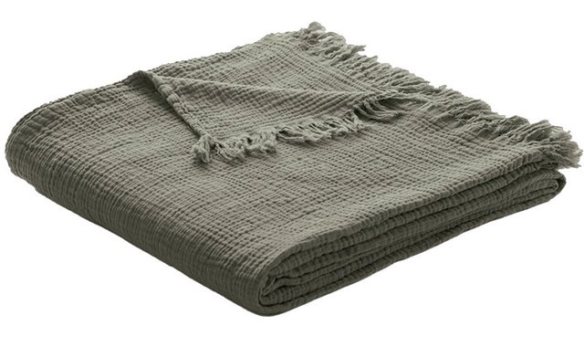 Olive green is a soothing colour that brings to mind nature and tranquility. Create your warm space. Muslin olive green throw Size: 60'' x 70'' 100% cotton muslin Machine washable and dryable Made in Portugal
