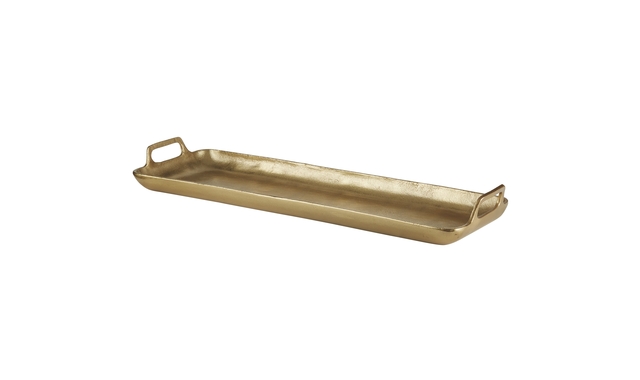 This tray was made for serving up superb style. Goldtone finished cast aluminum sets a sturdy foundation. This is the perfect fashionable piece for quickly adding versatility to your home.