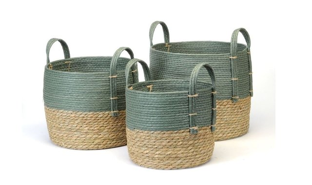 Set of 3 turquoise and natural wicker baskets, available separately, small $ 22.99 / medium $ 32.99 / large $ 43.99. They can be used as a flowerpot for plants or even simply for decorative purposes.