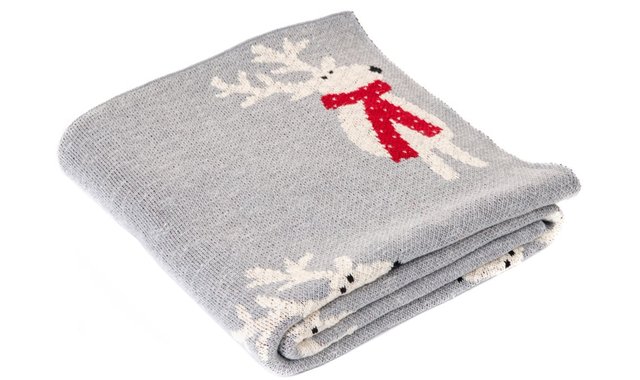 They are so elegant...and endearing! Gray throw with cream deer patterns Dimensions: 50'' x 60" 100% cotton Machine washable and dryable