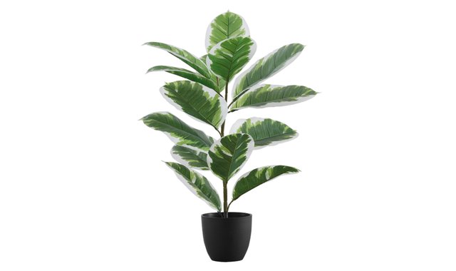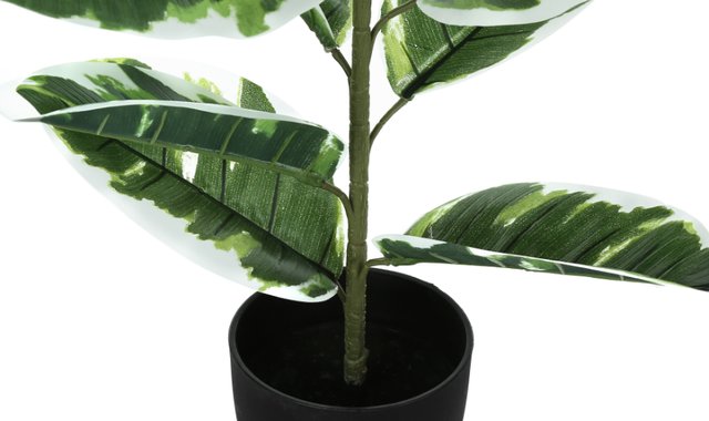 This 27” tall artificial rubber plant is the perfect addition to your home or office. It's set in a 5” black pot and features 15 two-tone, green and white leaves that can be adjusted as desired to give a very realistic look. The high-quality materials give a real-touch feel and are durable for years of enjoyment. This houseplant is perfect for those who like to beautify their interiors without having to worry about the details. With no need for water or sun, this eco-friendly dummy plant can withstand any conditions. Rely on this realistic table plant to instantly give any room a new look.