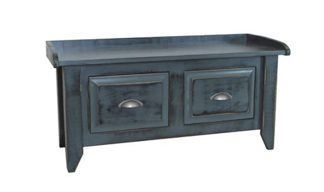 Rustic and sophisticated 2-drawer bench in vintage navy color.