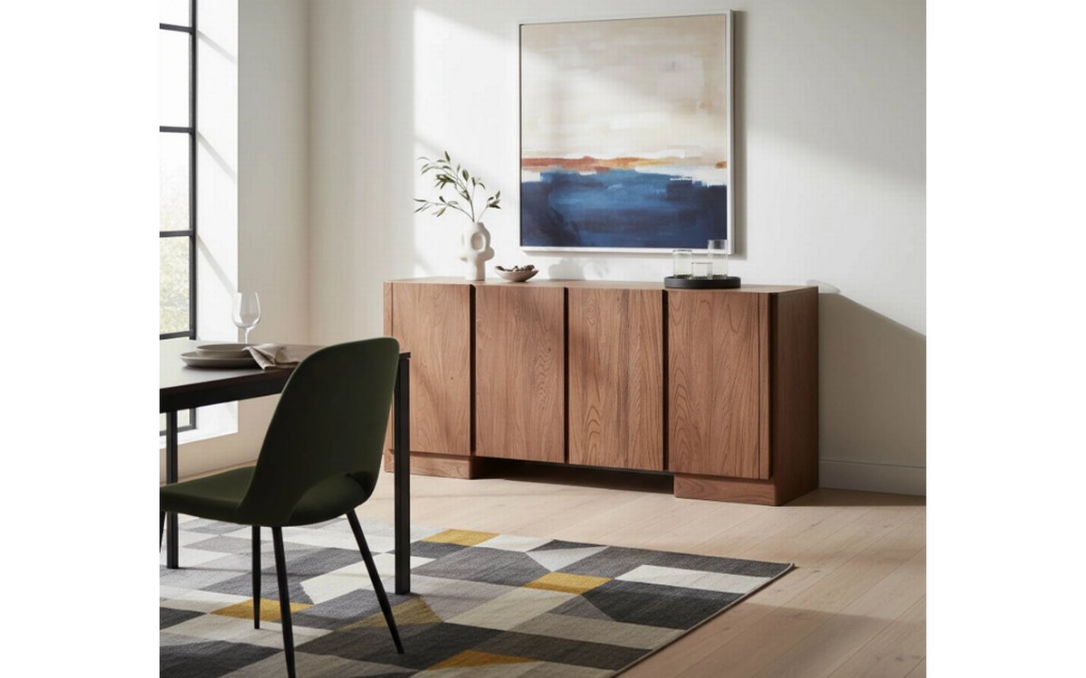 This sideboard is built from rich elm wood in a warm caramel finish, offering natural beauty and abundant storage.Its clean lines and earthy tones create an elegant focal point for dining or living spaces. Made from elm wood in a sophisticated caramel finish Four-door design offers spacious interior storage Warm, rustic appeal suited to modern natural interiors