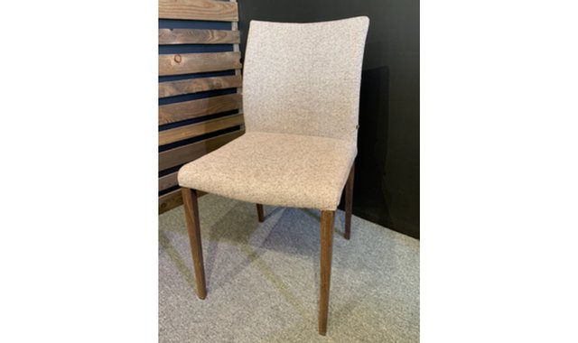 Fabric kitchen chair with walnut legs. Seat height 19 ''.