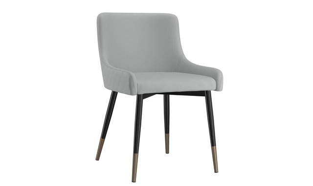 Modern dining chair with faux leather upholstery Diamond-patterned stitching detail on seat and back Black metal legs with aged gold-dipped detail Firm polyester foam cushion Approximate weight capacity is 300 lbs; seat height is 18.5"