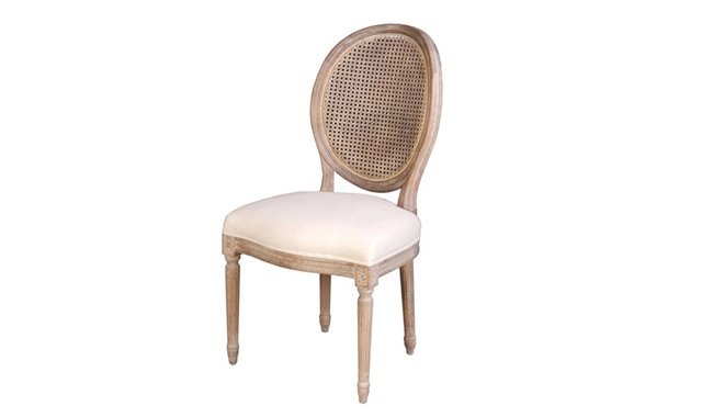 Wooden kitchen chair, linen fabric. Dine in style and comfort with this sleek and sophisticated dining chair.