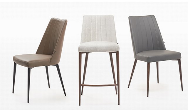 The Mel chair is a take on one of Kaza Design’s most popular styles. The backrest features an eye-catching and exclusive design. With the rich upholstery and meticulous finish of the vertical stitching, Mel adds a touch of luxury to the everyday. In this collection, Kaza Design also offers a counter stool.