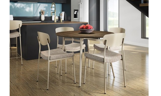 The KRISTA dining chair is inspired by Scandinavian minimalist design characterized by clean, simple and unadorned lines. The padded, rounded seat contrasts nicely with the metal base and back. The KRISTA chair adapts to any kind of decor, from classic to modern. Try it, adopt it! Upholstered kitchen chair, black metal base Choice of color available in store. Customize it to your liking.