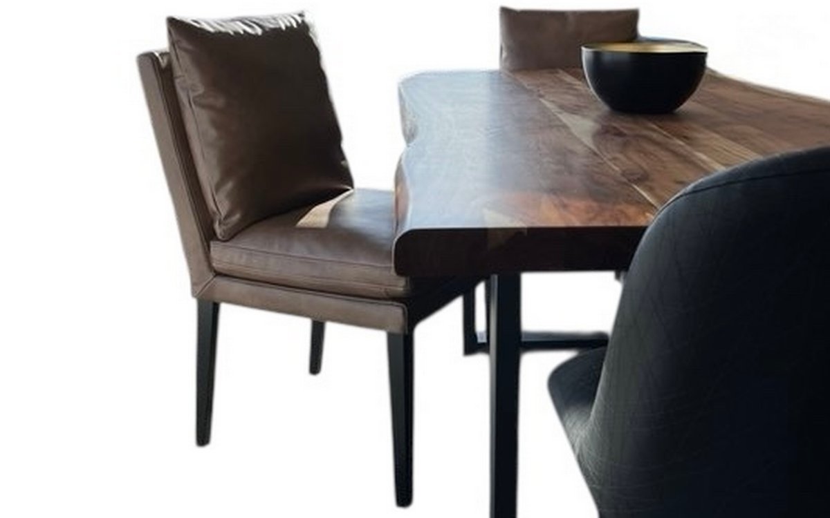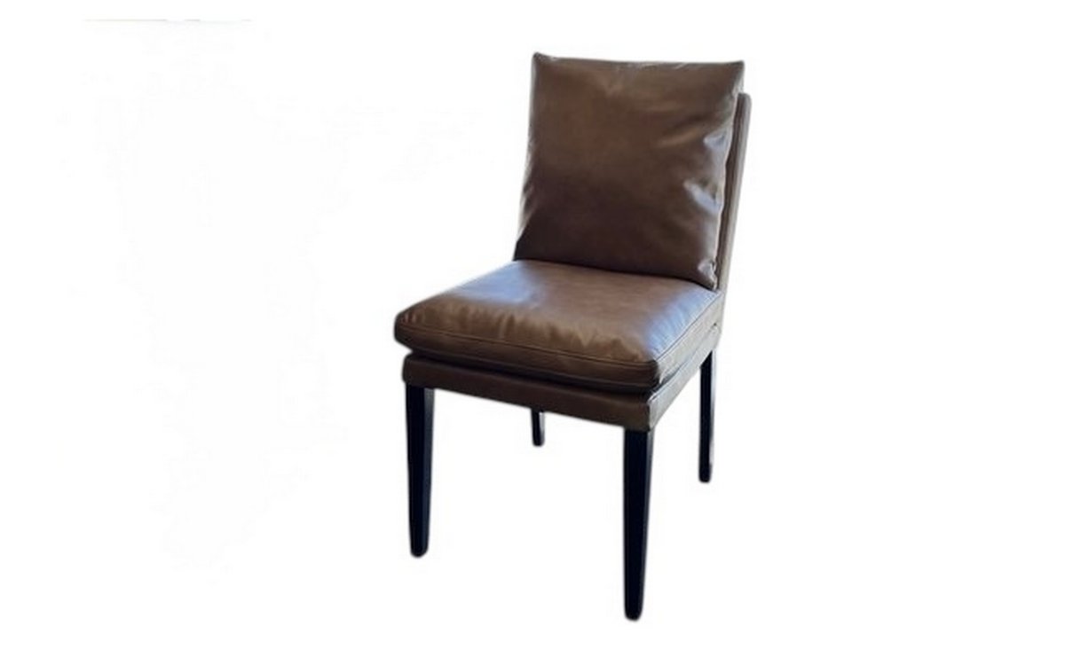 Dining chair, model CORTINA by BO MEUBLE- Upholstered in vegan leather, a plant-based vegetable leather - Seat colour: cognac brown - Leg colour: black - Sold alone