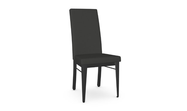 Dining chair by Amisco, Merlot model. Coral black metal frame and seat in CP fabric, volcano color. Material: Upholstered seat and backrest.