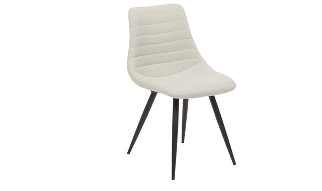 Upholstered kitchen chair, black metal base and dove fabrics.