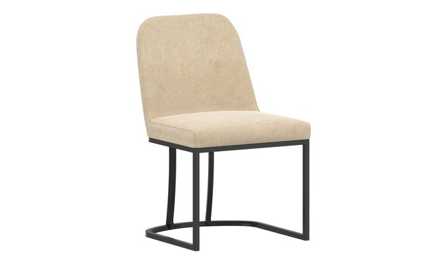 Modern dining side chair Oversized seat is upholstered with a plush, textured chenille fabric Metal frame and base in a black finish Medium-soft comfort polyester foam cushion Approximate weight capacity is 300 lbs; seat height is 19" Dimensions: 23.25 x 19.25 x 32.75"H