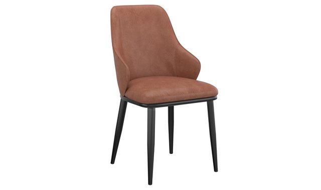 Modern armchair with metal frame Contoured seat back with faux leather upholstery Metal legs with a matte black finish Medium-firm comfort polyester foam cushion Approximate weight capacity is 300 lbs; seat height is 19.5" Dimensions: 24 x 19 x 34"H
