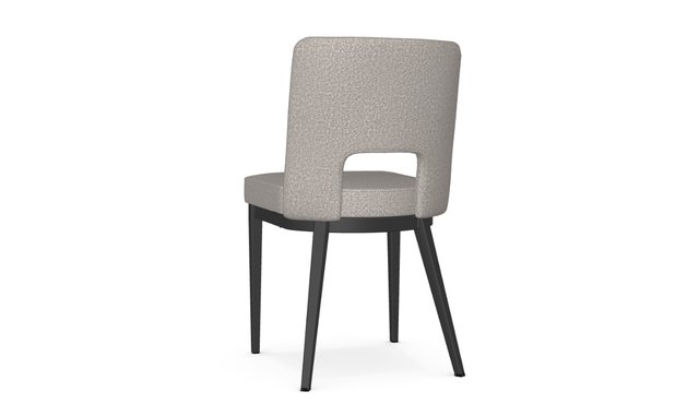 The Bryana dining chair is designed for those looking to add a farmhouse, transitional or contemporary touch to their living space. Its upholstered backrest is gracefully curved for optimal comfort, while the open-back design adds a sophisticated allure to the chair's aesthetic. Supported by a metal base with elegantly angled back legs, this chair is as sturdy as it is beautiful. Product made from premium North American steel Painted with an environmentally safe, lead-free baked-on powder coating for a scratch-resistant finish Fully welded heavy-duty metal structure for enhanced durability Weight capacity: tested up to 300 lb Made in Canada 10-year limited residential warranty