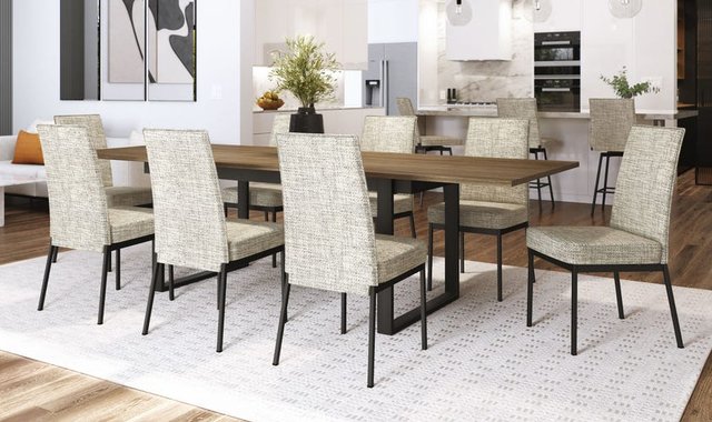 The Dorian dining chair reveals a beautiful simplicity, harmonizing with a wide variety of dining tables. Its refined backrest detail enhances its clean, straight lines. The thick seat offers exceptional comfort, while the backrest perfectly supports posture. Combining style and everyday comfort, this chair is the ideal choice for a contemporary dining space. Made from high-grade North American steel Painted with an environmentally friendly, lead-free baked-on powder coating for a scratch-resistant finish Fully welded, sturdy metal structure for enhanced durability Weight capacity: tested up to 300 lb Made in Canada 10-year limited residential warranty