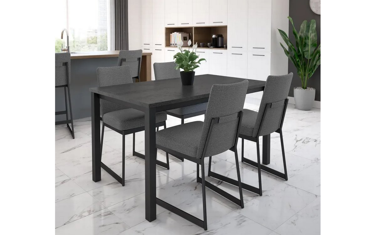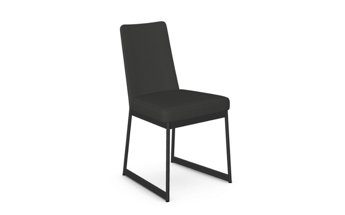 Dining chair by Amisco, Zola model. Coral black metal frame and seat in CP fabric. Material: Upholstered seat and backrest.
