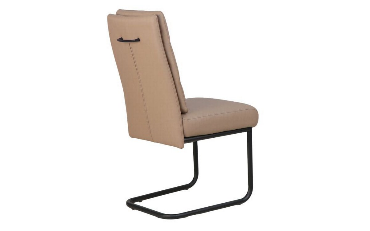 Modern dining chair pu charcoal Textured chenille fabric upholstery Black metal c-style base and handle on chair back Medium comfort polyester foam cushion Approximate weight capacity is 300 lbs; seat height is 19.75" Dimensions: 20.50 x 18.25 x 38.25"H