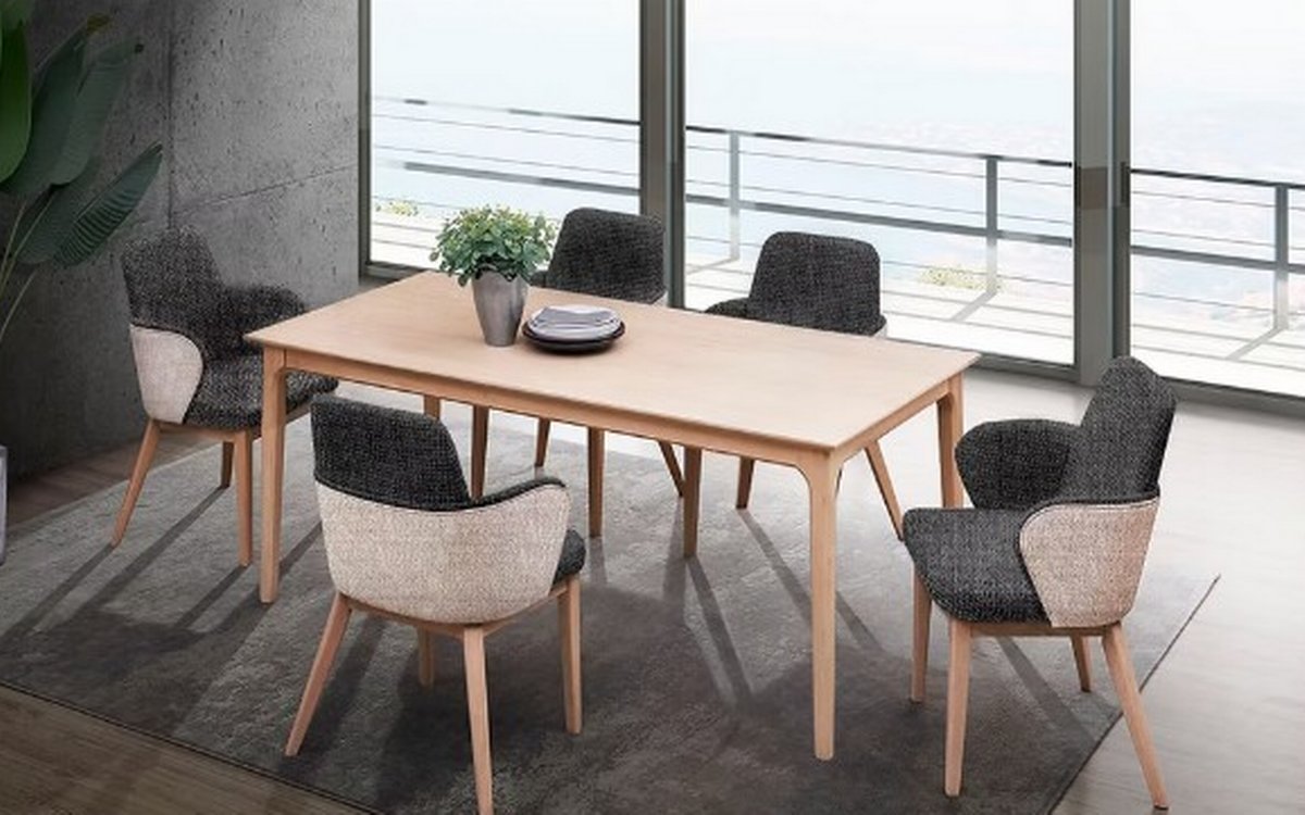 Collection Harper Made in Malaysia Chaise Natural color wood Light and dark grey fabric Solid rubberwood
