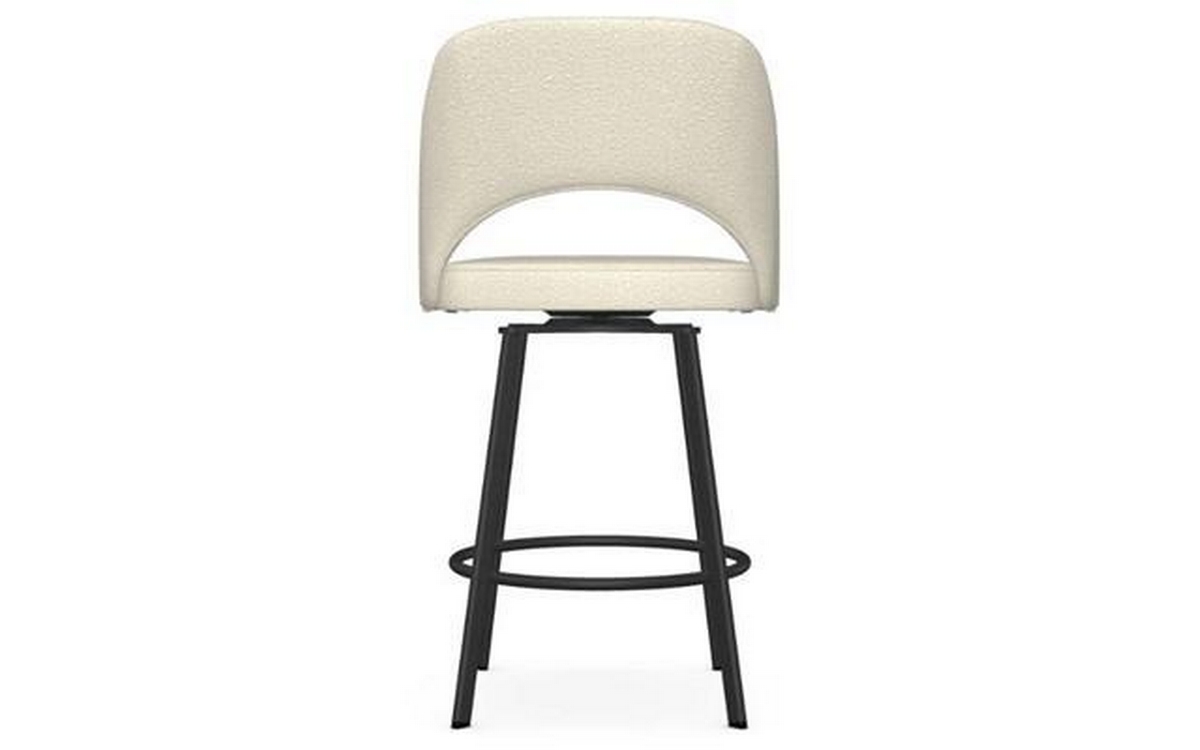 This Scarlett swivel stool will undoubtedly be a great addition to your kitchen. It will provide a cozy atmosphere, while its curved lines will add a bold touch to your decor. With its upholstered seat and shell-shaped backrest that hugs your back perfectly, you and your guests will enjoy the comfort of this barstool. Enjoy every moment around your kitchen island!