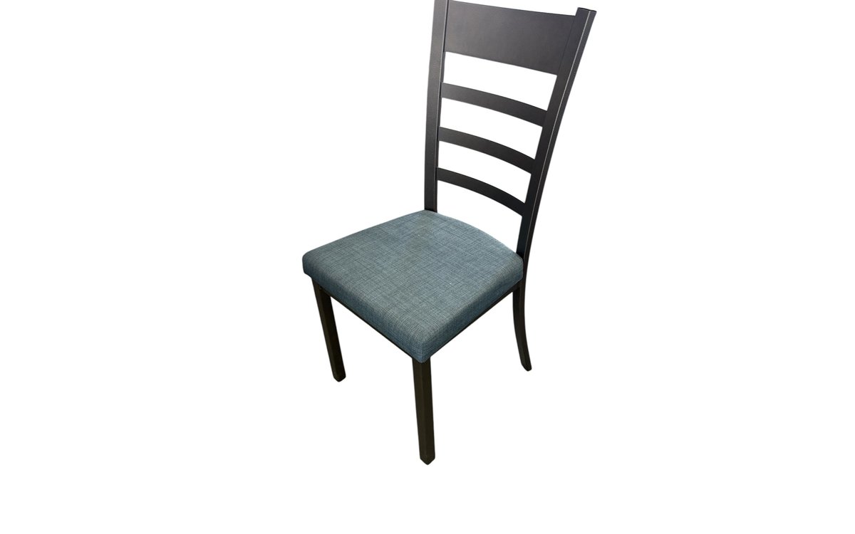 Set of one (1) table and four (4) chairs from Amisco - Includes a cherry wood table, Ricard model - Two (2) wooden chairs and two (2) blue fabric chairs