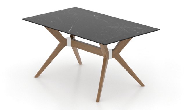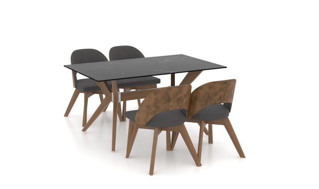 This exceptional rectangular table will bring unrivaled shine to your decor. Its original base and magnificent porcelain top make it a unique model, plus 4 chairs inspired by the Mid-Century style. They stand out thanks to their magnificent rounded back with an opening. Their padding offers great comfort, while the addition of wood at the back gives them a very original retro look.