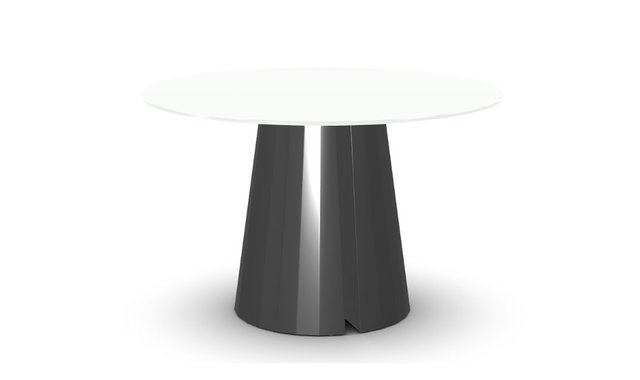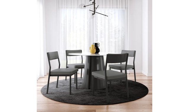The Gemma table stands out for its modern, refined design. With its round tempered glass top and shiny metal center leg, it combines sturdiness and minimalist aesthetics, creating a sophisticated focal point for your dining room.