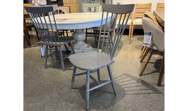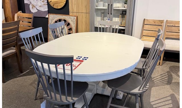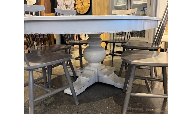 Dining room set: table & 6 chairs Solid cherry wood 54" round + 20" extension leaf Demonstrator clearance. Made in Quebec