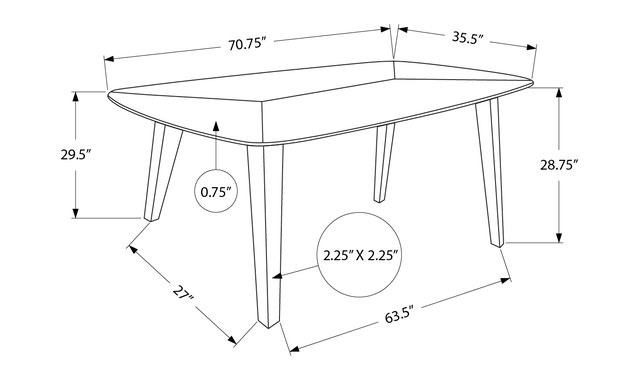 - Dining Table : 70 3/4 X 35 1/2 X 29 1/2