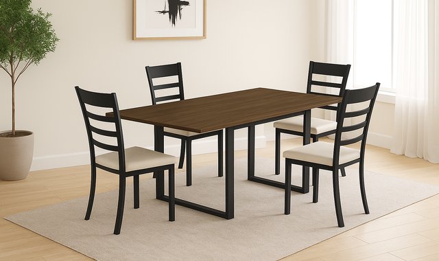 Elevate your dining space with a set that’s as refined as it is functional. The extendable table, with its clean lines and thoughtful design, adapts beautifully to every shared moment. Chairs crafted for both comfort and style bring a soft, welcoming atmosphere to the room. Premium materials and a solid structure speak to lasting quality in every detail. A timeless ensemble—made to impress, built to last.