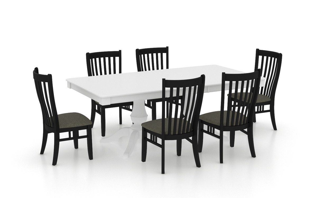 6-piece dining room set including: a 42-inch wide by 62-inch long table. It features a 20-inch extension leaf, along with six chairs. The set is made of 100% solid birch.
