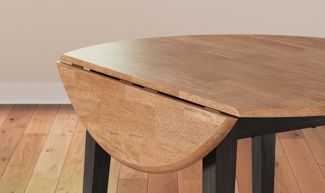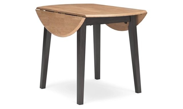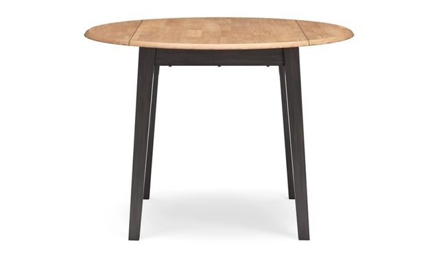 Complement your home’s simply relaxed sensibility with this drop-leaf dining table. A handsome dark brown hue offers a chic contrast to the natural wood tone, for a neutral look that vibes with a variety of aesthetics. When guests drop by, convert it from a space-saving two-seater to a larger table with the two drop leaves. Whether you're sipping your morning coffee, settling in for dinner or working from home, this table is smartly designed for everyday comfort and style.