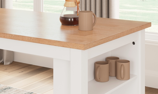 Complement your home’s simply relaxed sensibility with this counter height dining table. A crisp white hue offers a chic contrast to the natural wood tone, for a neutral look that vibes with a variety of aesthetics. Built-in storage shelves keep kitchen and work accessories easily accessible. Whether you're sipping your morning coffee, settling in for dinner or working from home, this chair is smartly designed for everyday comfort and style.
