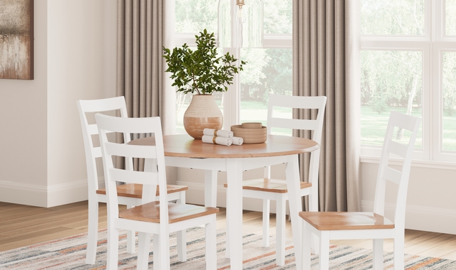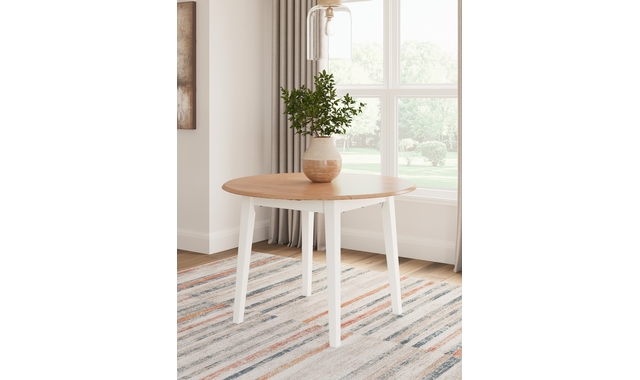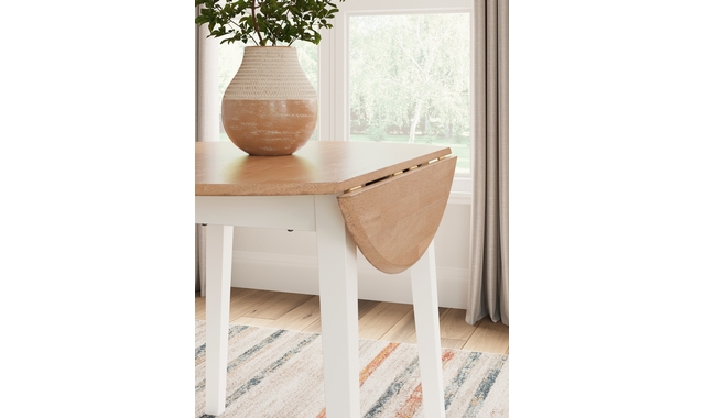 Complement your home’s simply relaxed sensibility with this drop-leaf dining table. A crisp white hue offers a chic contrast to the natural wood tone, for a neutral look that vibes with a variety of aesthetics. When guests drop by, convert it from a space-saving two-seater to a larger table with the two drop leaves. Whether you're sipping your morning coffee, settling in for dinner or working from home, this table is smartly designed for everyday comfort and style.