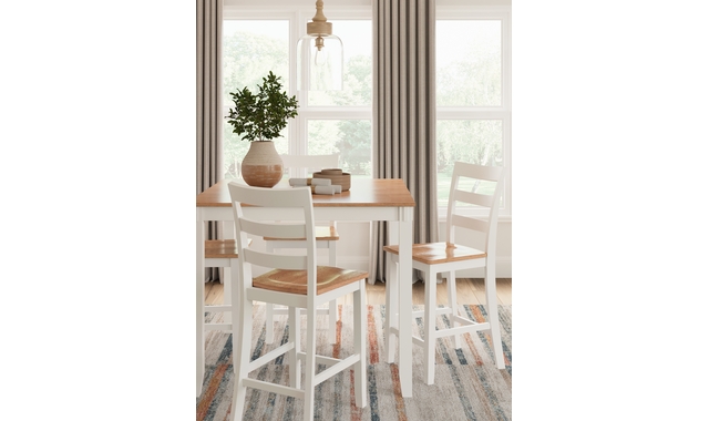 Complement your home’s simply relaxed sensibility with this counter height dining table and bar stools. A crisp white hue offers a chic contrast to the natural wood tone, for a neutral look that vibes with a variety of aesthetics. Whether you're sipping your morning coffee, settling in for dinner or working from home, this set is smartly designed for everyday comfort and style.