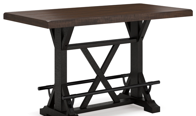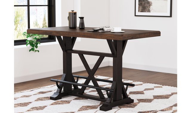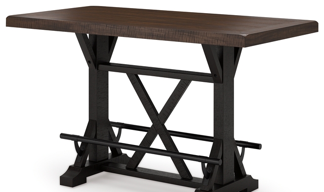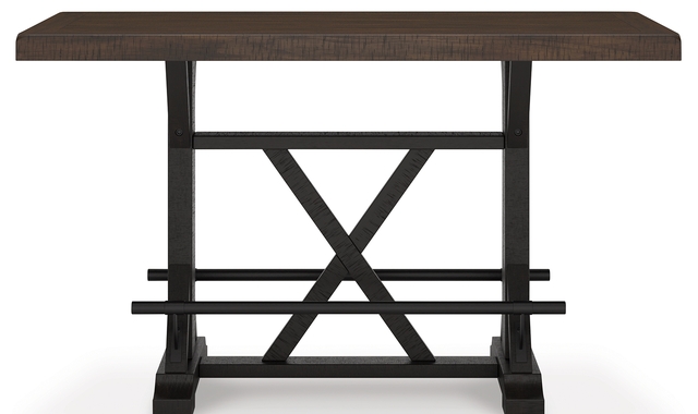 A high-style choice for smaller spaces, this counter height dining table serves up the best in rustic farmhouse living. The table's two-tone finish pairs a brown wood-tone top with a rustic black base for a double helping of charm. Black metal footrests add such a distinctive twist.