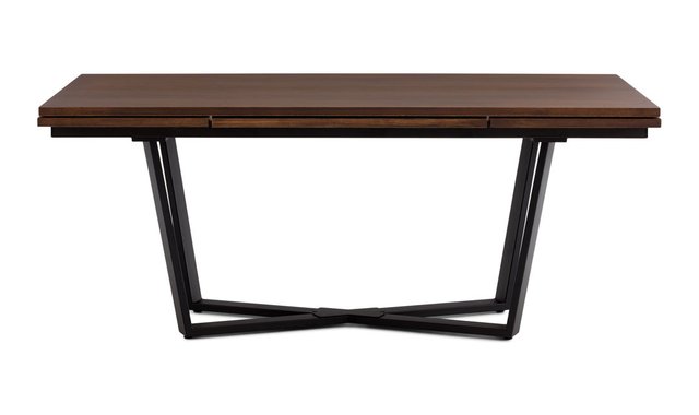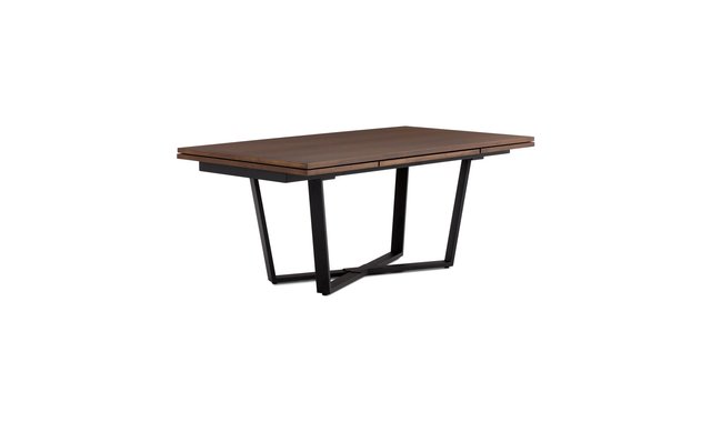 The contemporary CHARLIE dining table features a metal cross base and a 3-in-1 design. Its hydraulic sliding system allows you to extend two side extensions at the end of the table to quickly adjust to the number of guests. At last, you can enjoy the pleasures of life in good company! Other color options possibles.