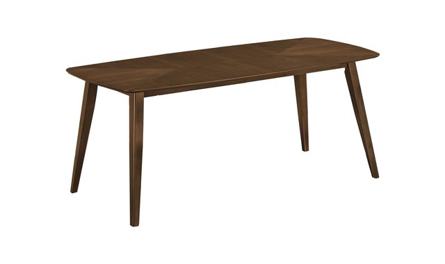 DINING TABLE - BROWN WALNUT VENEER / 36"X 72" SKU#: I 1364 Bring a touch of mid-century flair to your dining room or kitchen with this fashionable 72" rectangular dining table. Crafted with a dark walnut veneer top and solid wood angled legs, this durably designed piece is perfect for casual family dining, easily seating up to 6. The easy to clean top ensures that mealtime messes are a breeze to wipe away, while the easy to assemble illustrated instructions makes setting up this stylish dining table a cinch. Backed by a 2 year limited warranty, you can trust in the quality of this sleek addition to your home. Pair this table with some matching chairs (sold separately) and upgrade your space with this fashionable style dining table today!