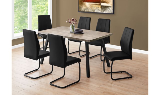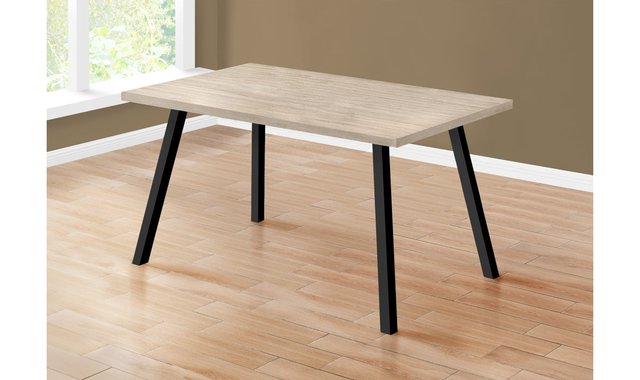 Gather the family together for an evening or invite your friends over to see this rustic-style table that accommodates up to 6 people. Thoughtfully designed for your dining room, this table features sturdy black metal legs to accommodate everything from a small weeknight meal to a family feast. This table carries a modern and authentic wood look that will quickly become your favourite ever dining table. It's time to dine in style and comfort! Chairs are sold separately. Sturdy apron for a rustic look that will last a lifetime. Heavy-duty table legs offer a contemporary touch against the wood-look surface. Table seats up to 6 comfortably in the dining room of your home, apartment or condo. Taupe colour table in an industrial and contemporary style.