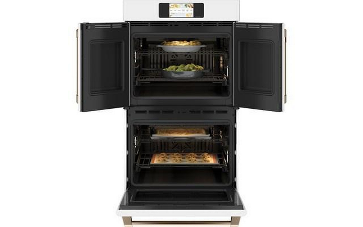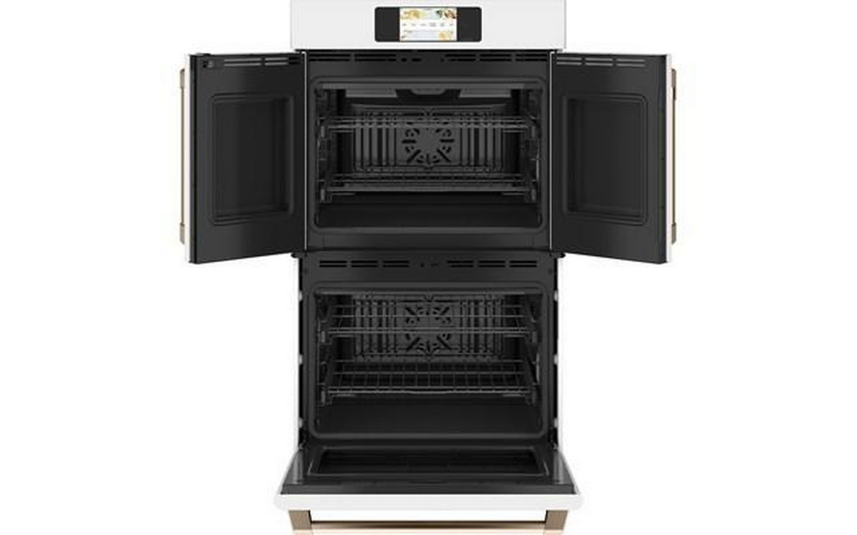 Café™ Professional Series 30" Smart built-in convection French-Door double wall oven. The top oven’s French door design offers an ergonomic, walk-up experience and, since both doors open at once, you can hold your cookie sheet with one hand and open the oven with the other. And with Precision Cooking built into both ovens, your meals are perfectly executed every time.